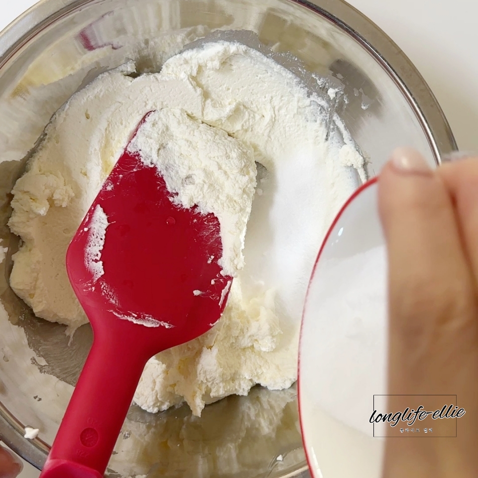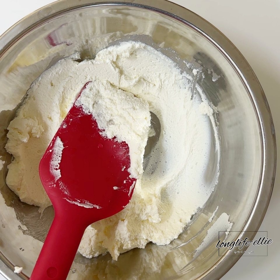 생크림도 한번에 넣지 않고 나눠서 넣으면 더 잘 섞입니다.