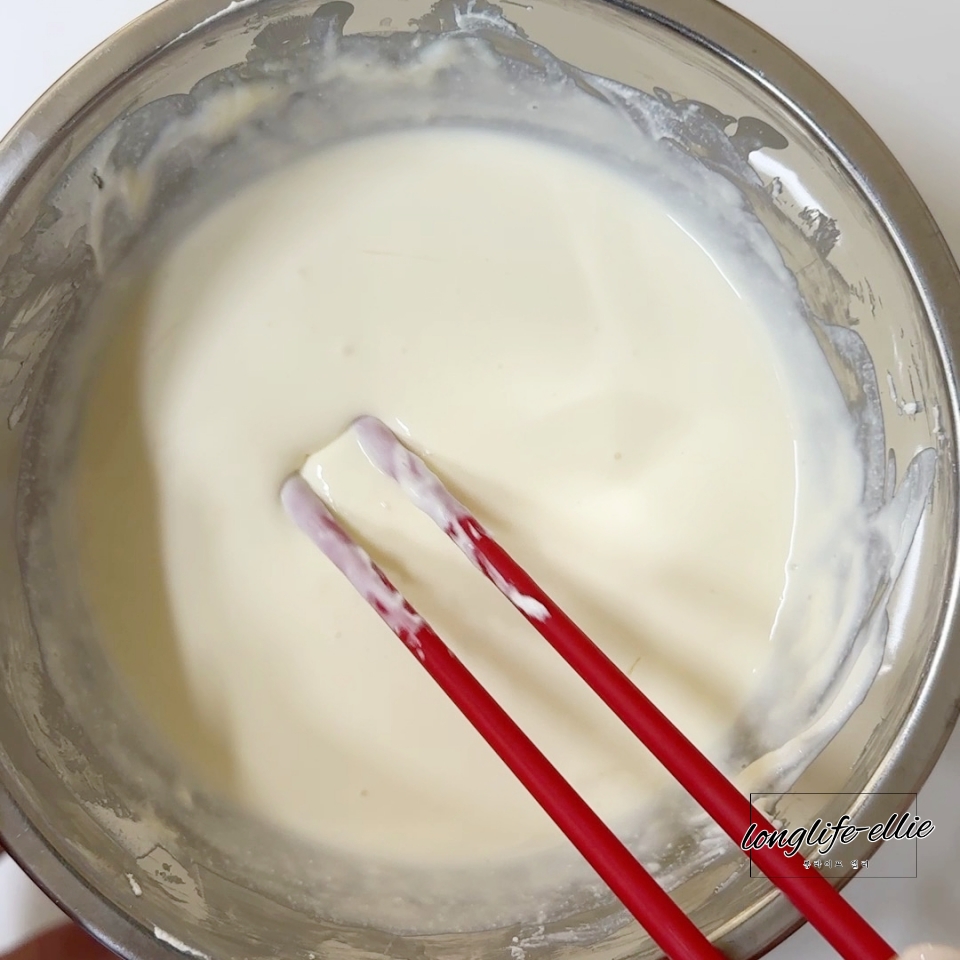 크림치즈가 부드럽게 섞일 수 있도록 풀어주세요.