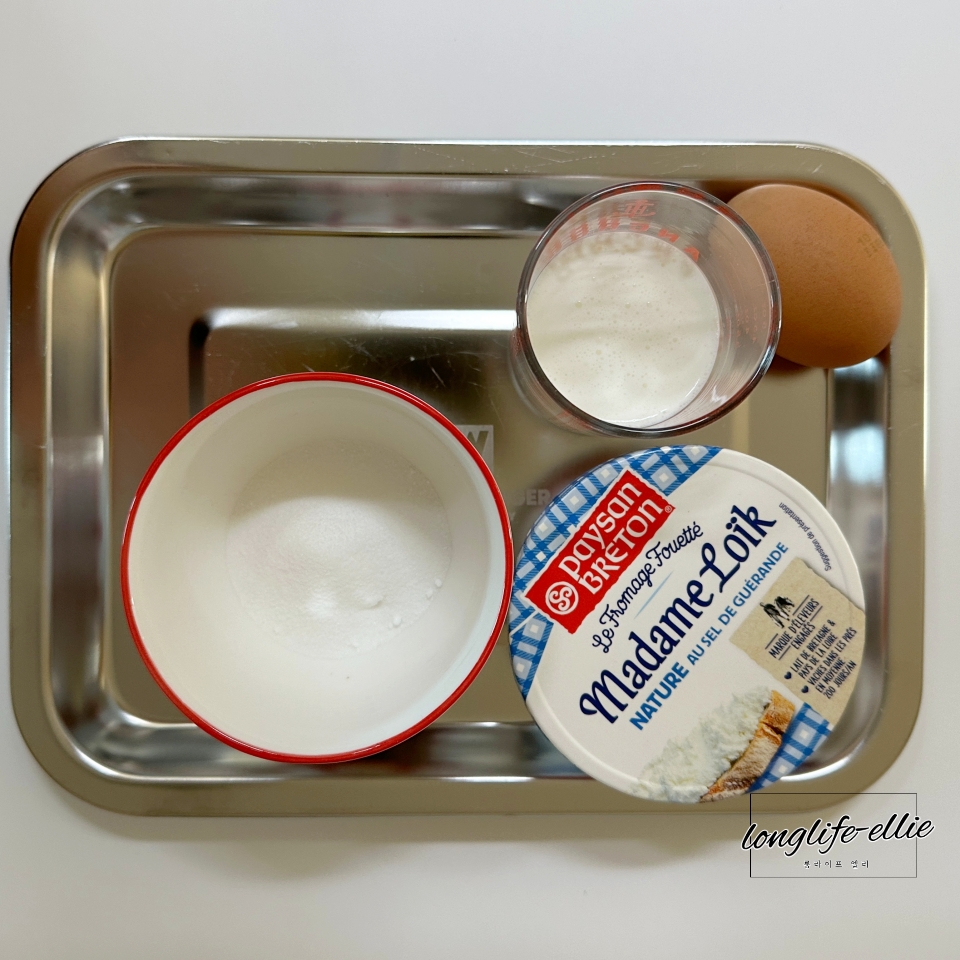 크림치즈 150g, 생크림 70ml, 가루 알룰로스 25g, 계란 1개