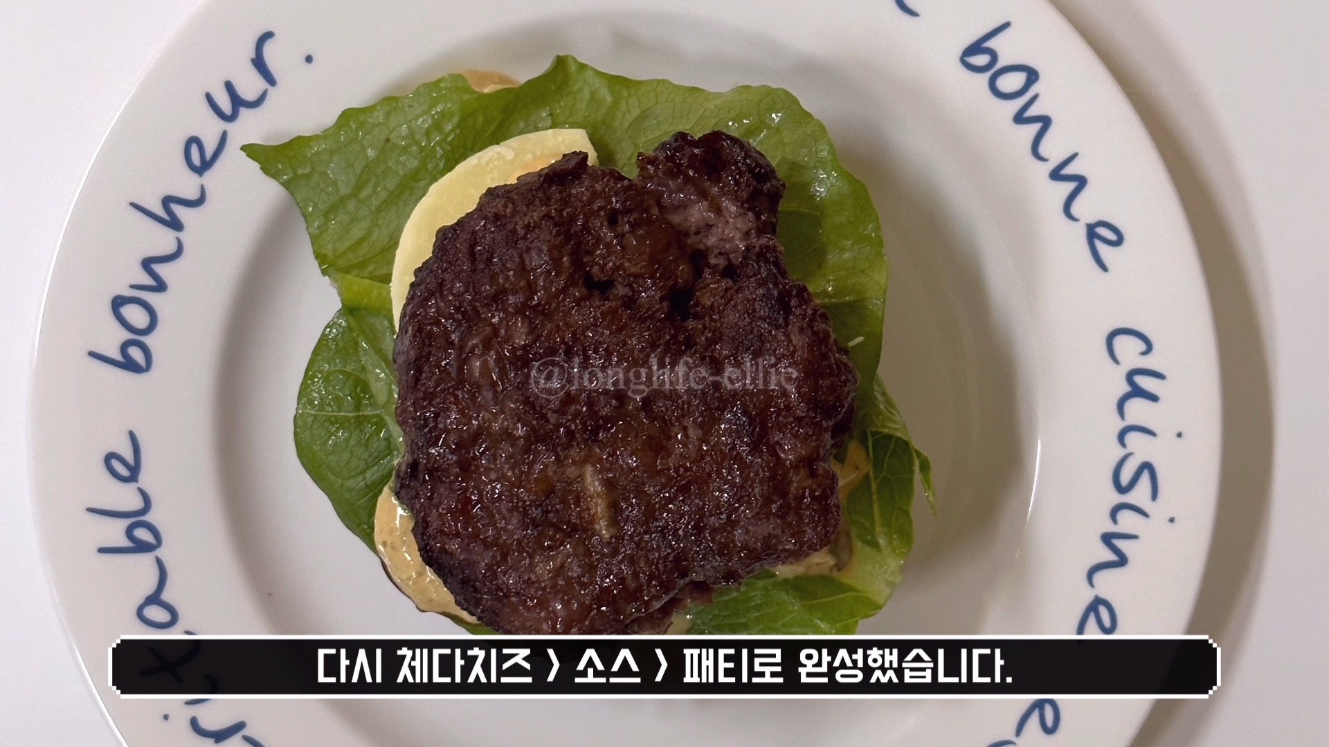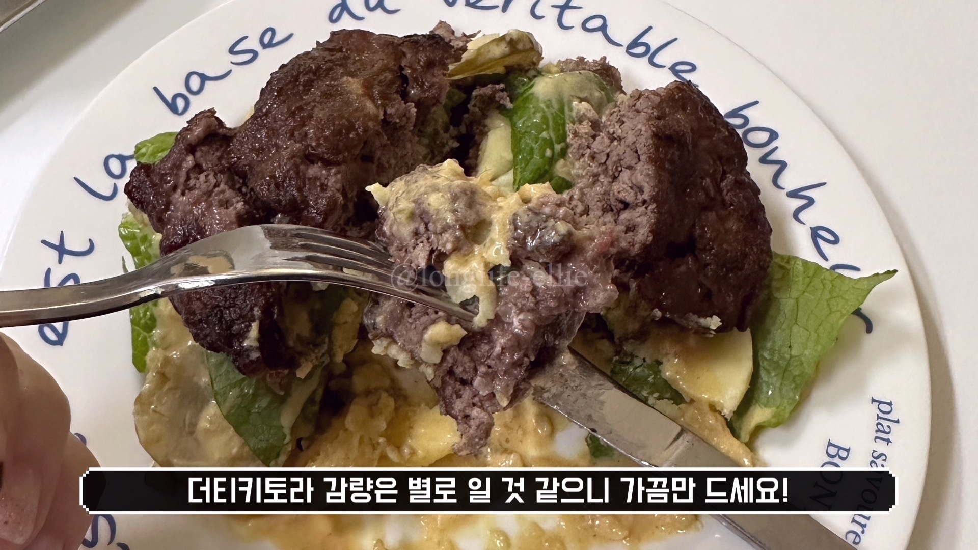 모든 재료를 쌓으면 간단하게 키토제닉 수제버거가 완성이 됩니다.