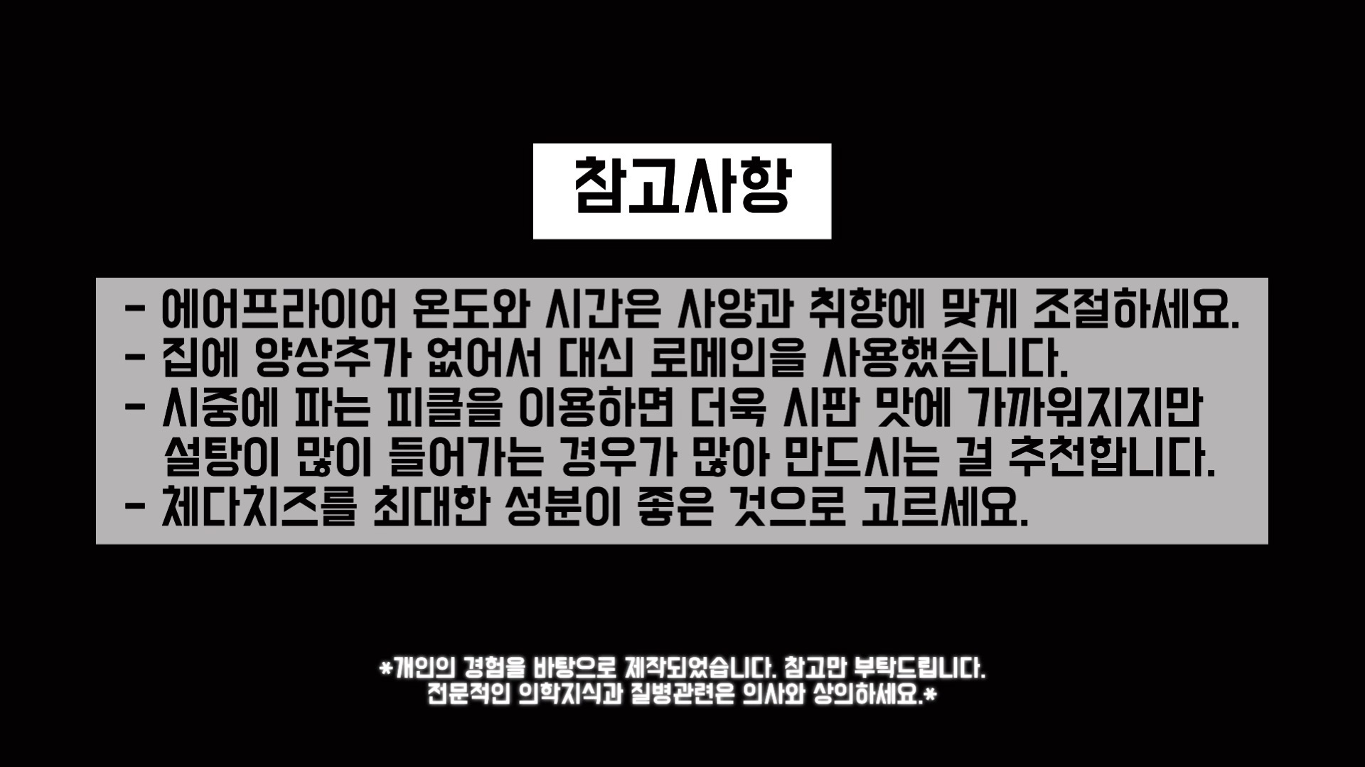 에어프라이어 사양에 따라 차이가 있을 수 있으니 취향과 사양에 따라 조절해 주세요.