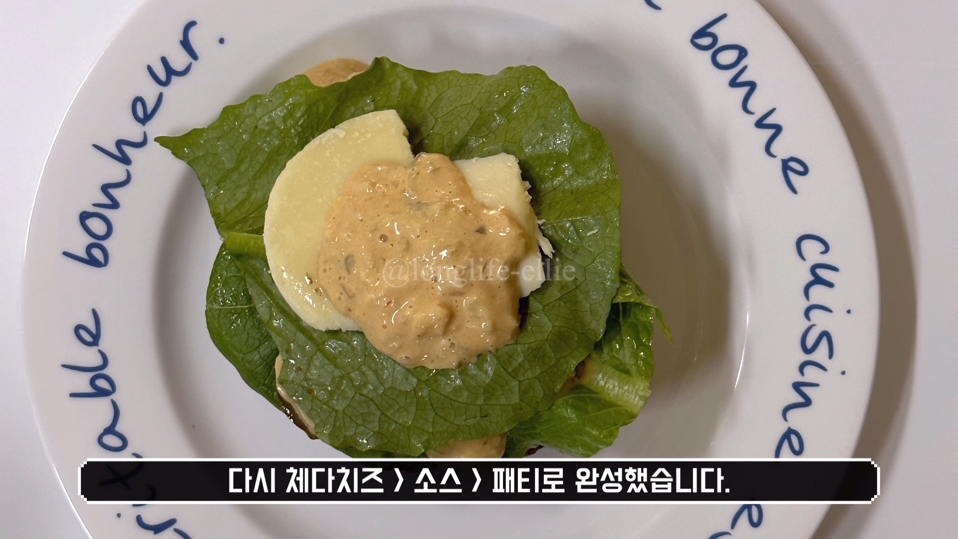 제가 체다치즈를 슬라이스용이 아닌 좀 성분이 좋은 것으로 나름 고른 것을 칼로 자르다 보니 모양은 저렇지만 맛은 좋았습니다. 그리고 제가 양상추를 별로 안 좋아해서 집에 없어서 대신 로메인을 넣었습니다.