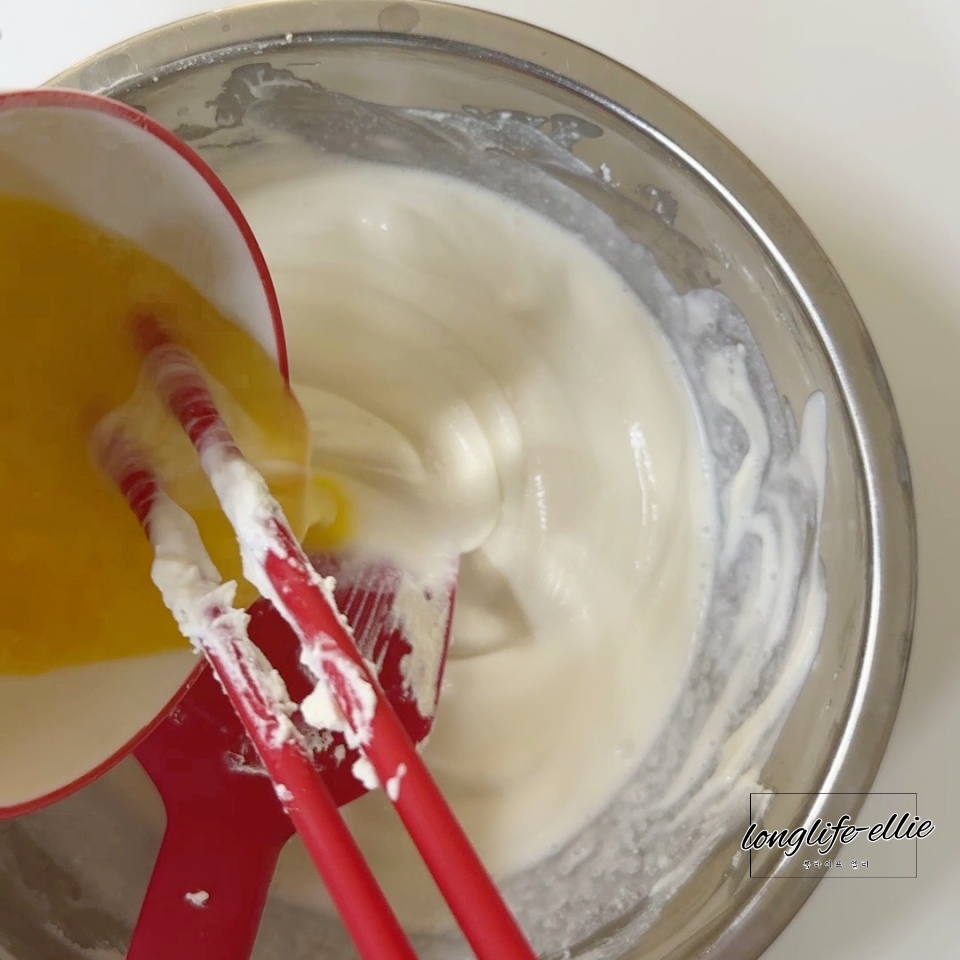 생크림도 한번에 넣지 않고 나눠서 넣으면 더 잘 섞입니다.